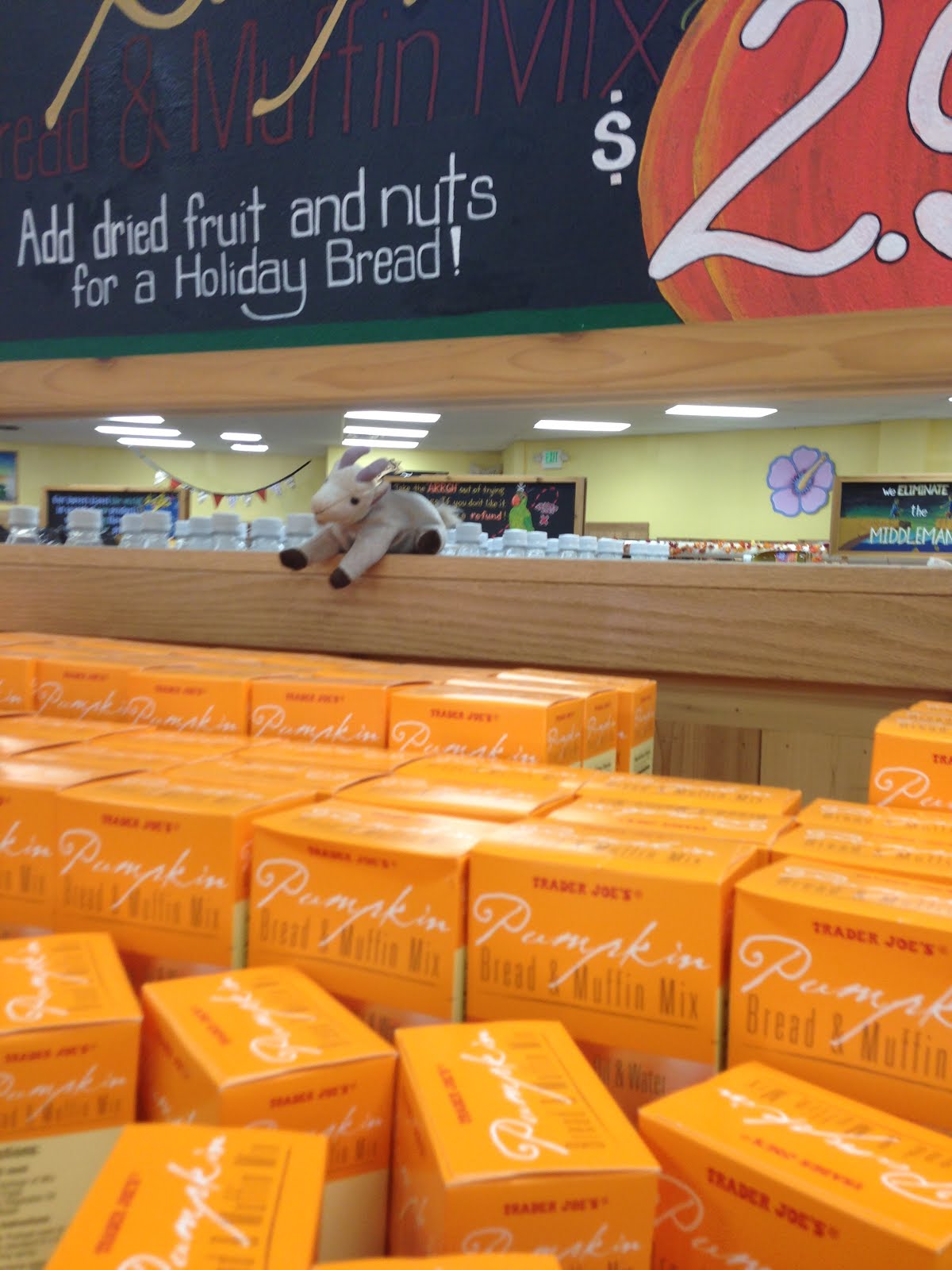 I shop at Trader Joe's a couple times a week (no joke...I head there twice a week just for produce trips). I love the store, plus it's close to my home. I've become pretty skilled at taking 4 kids shopping with me, but still, it's always nice to have something to "do" at the store. If the ever-changing decorations at Trader Joe's weren't enough to entertain the children, many locations hide little stuffed animals for the kids to find!